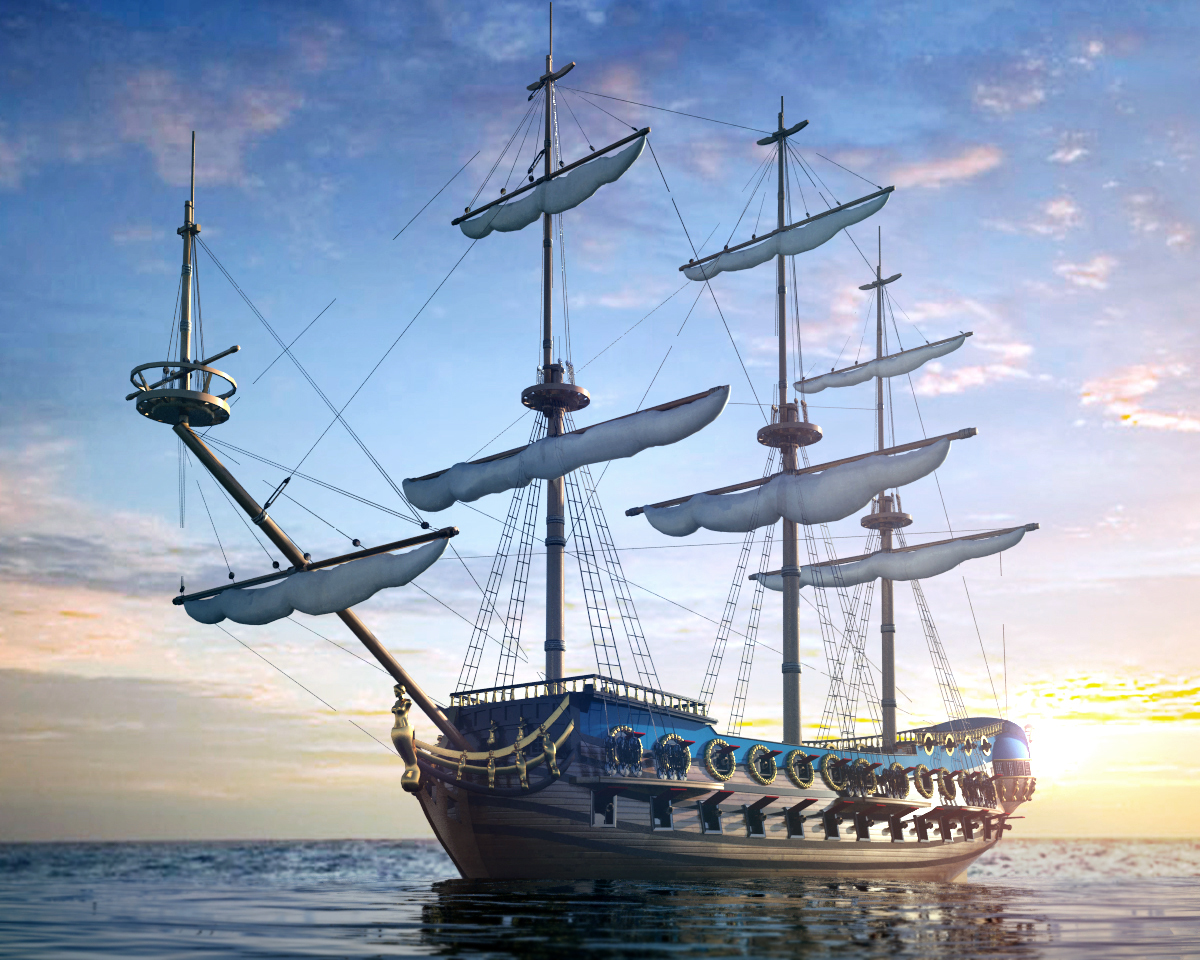 Прошел месяц. Трехмачтовый парусный линейный корабль набирал скорость. Паруса надувались пузырем, и корабль быстро скользил по волнам. Нос корабля рассекал воду, и пена расходилась по сторонам и уходила куда-то вдаль. Всем казалось, что корабль не плывет, а летит красивой ласточкой по поверхности синего моря. Люди на берегу и вся команда упивались красотой и величием такого быстроходного красавца, парусного корабля. Боцман важно поглаживал бородку и давал быстрые и громкие указания: «Закрепить бизань7 (нижний косой парус)! Развернуть грот-бом-брамсель8 (верхний парус)! Натянуть канаты!».