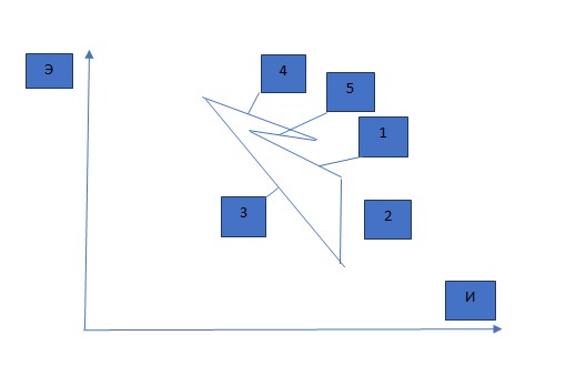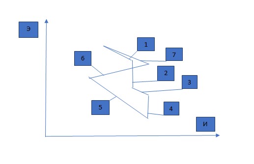 Э – общая энтропия нашего уровня организации, включающего тела с размерами от 0,1 мм до 100 м, И – человеческая информация, записанная или сказанная на нашем уровне организации. Цифрами обозначены этапы цикла.