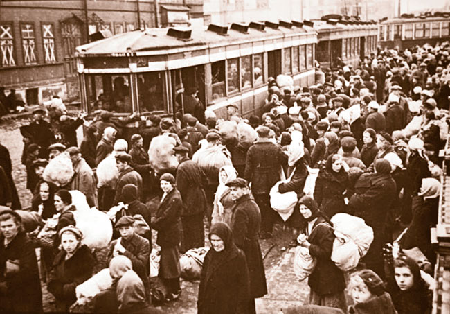 Посадка в трамвай эвакуируемых из Ленинграда. Сентябрь 1941 г.