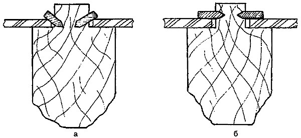 Рис. 3. Закрепление стекла шпильками: а – неправильное; б – правильное