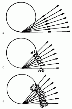 Рис. 14. Определение сорта стали по искре: а – низкоуглеродистая; б – среднеуглеродистая; в – высокоуглеродистая.