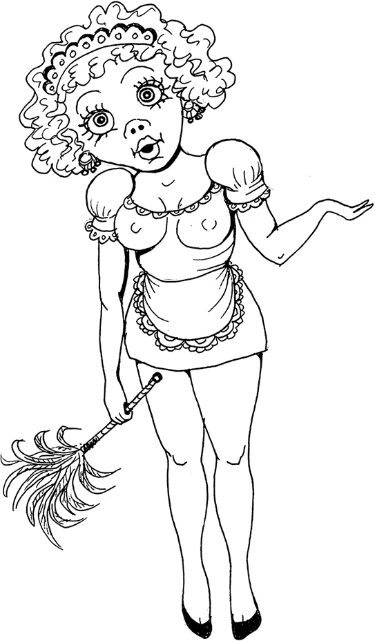 В гостиной их ждала круглощёкая, белокурая девица, похожая на матрёшку, с выщипанными бровями – вместо них были нарисованы два маленьких коромысла. Под ними – большие, влажные глаза молодой коровы, печальные и зовущие. Груди выпирали, как зачехлённые ракеты, а талия была так затянута, что казалась намного тоньше шеи. Юбка даже не пыталась прикрыть колени, потому что оканчивалась там, где кончались трусики.