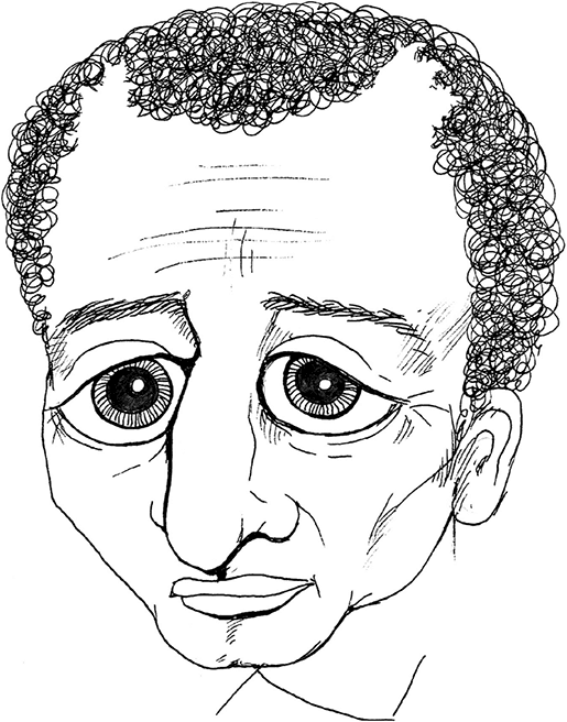 Его лоб был величиной в автостоянку, с двумя глубокими залысинами, как въезд и выезд. На плечах элегантный пиджак, дорогая рубашка, галстук с золотым зажимом – экипировка преуспевающего бизнесмена. Но при этом, глаза его были до боли печальные. как глаза детей за колючей проволокой гетто.