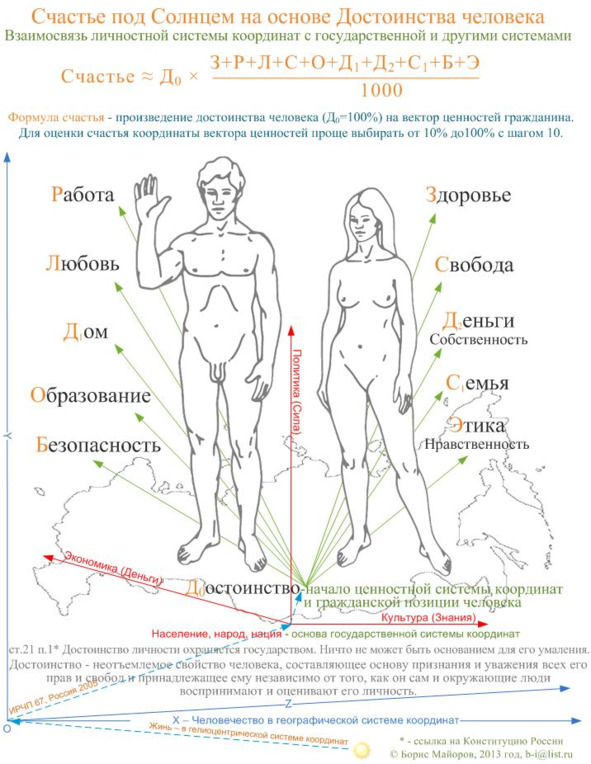 В нашей стране большинство людей после краха тотального советского режима не приобрели современные научные системные ориентиры, а наоборот впитали фрагменты разных, часто ложных, понятий и представлений. Их ценностные ориентиры могут наполняться и изменяться даже в течение недели. Это особенно заметно в условиях политической, идеологической или экономической борьбы конкурентов, когда необходимо манипулировать массами конкретного региона или страны. Основной вневременной социальный ориентир на сегодняшний день для всех сообществ от группы из трёх человек до ещё недавно существовавших империй – это подчинение действующему царю, императору, вождю, президенту, командиру, начальнику, мужу, главе, главарю… Условное или беспрекословное подчинение по присяге или по договорённости в различных вариациях пока работают и их полагается принимать, понимать и строить свои толерантные отношения с людьми исходя из существующей реальности.