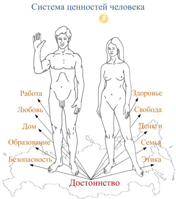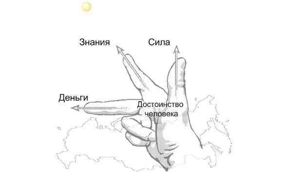 Основной образ ценностных ориентиров человека из трёх пальцев и расширенная система ценностей понятна для каждого человека.