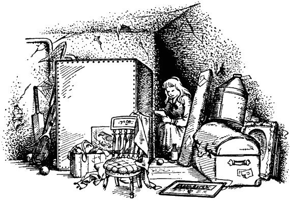 Кресло с высокой спинкой, стоявшее перед камином, задвигалось, а из-за него, как в пантомиме, вылез дядя Эндрью. Они были не в пустом доме, они были в доме Дигори, да ещё и в заповедной мансарде! Дети хором выговорили: «О-о-ой!» Теперь обоим казалось, что иначе и быть не могло, слишком мало они прошли.