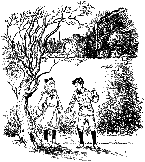 Жила она в одном из домов, стоявших тесным рядом. Как-то утром она вышла в крошечный садик позади дома, и мальчик из соседнего садика подошёл к самой изгороди. Полли удивилась: до сих пор в том доме детей не было, там жили мисс и мистер Кеттерли, старая дева и старый холостяк. И вот Полли удивлённо посмотрела на мальчика. Лицо у него было грязное, словно он копался в земле, потом плакал, потом утёрся рукой. Примерно это, надо сказать, он и делал.