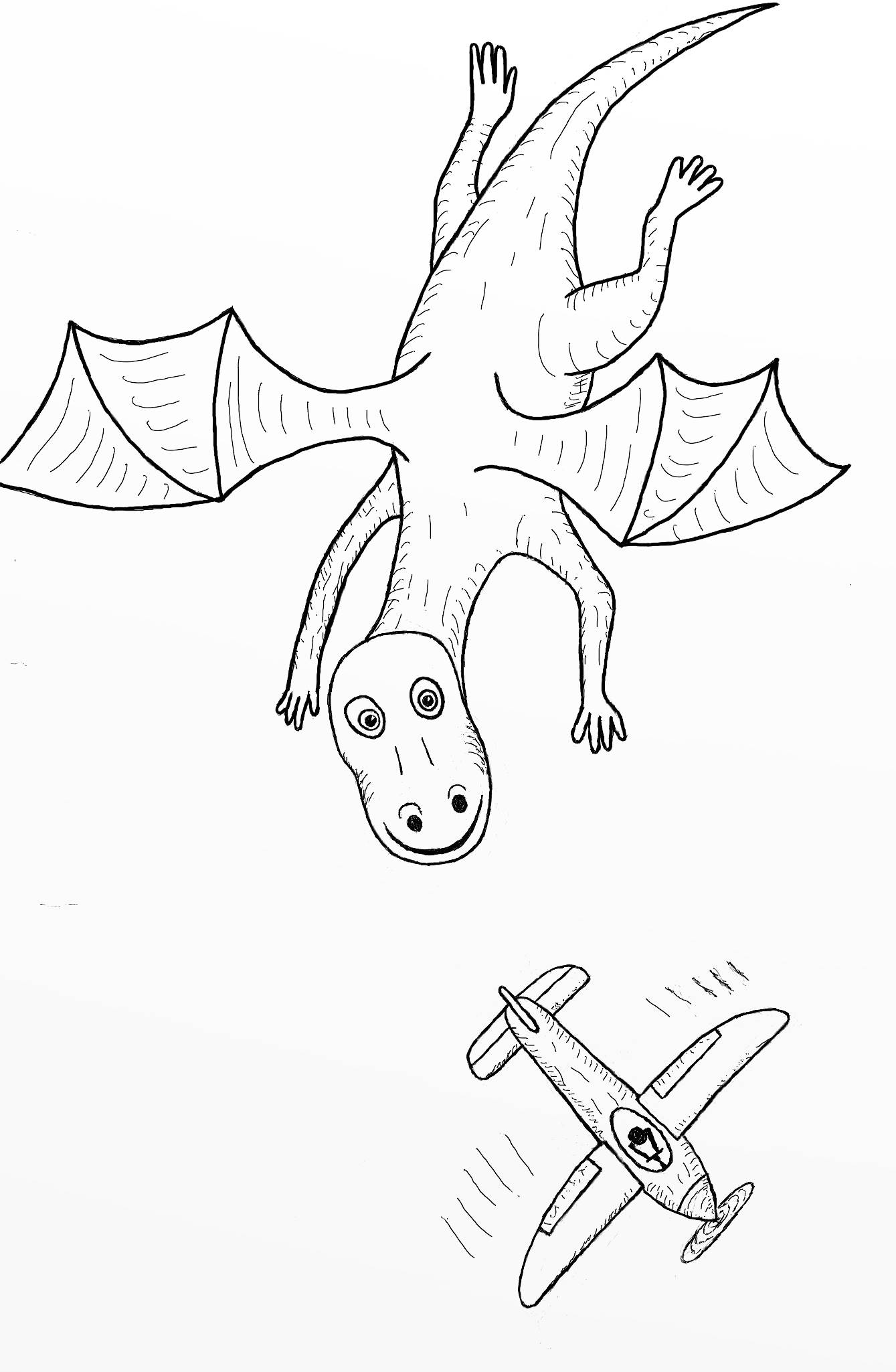 Дракоша взлетел и погнался за самолётиком, пытаясь ухватить его за хвост.