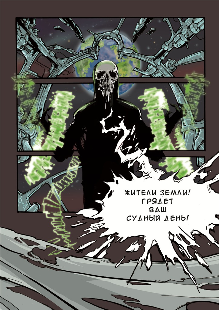 В комнате командного пункта был хорошо виден звездный космос. За панорамным окном во всю стену, на черном небе ярко светилась Земля и звезды. За пультом управления с мигающими кнопками едва проглядывал темный силуэт, внешне ничем не отличающийся от человеческого. Архат пристально смотрел на приближающуюся в окне Землю.