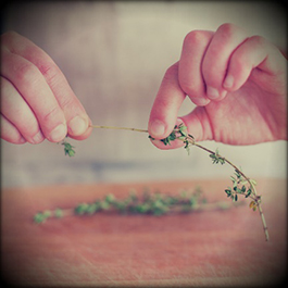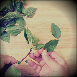 In order to separate leaves from soft stalks herbs such as coriander (cilantro), parsley, dill, fennel or basil, you should hold the solid stalk with one hand while plucking the leaves with the other hand. The leaves on wooden stalks are separated from the base to the top: hold the base of the stalk with one hand, and the fingers of the other hand purge away the leaves from the entire stalk moving towards its tip.