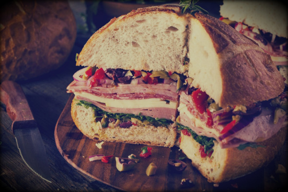 – Для оливкового салата соединить в миске все ингредиенты и приправить черным перцем. Расположить весь салат сверху одной части лепешки, а затем разложить слоями всю начинку. Поместить вторую часть лепешки сверху и плотно прижать ее. Обернуть блюдо пищевой пленкой и поместить в холодильник на 1—3 часа. Для сервировки разрезать сэндвич на небольшие аккуратные квадратики и немедленно подавать.