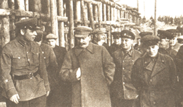 Сталин, Ежов (справа) и сопровождающие их лица