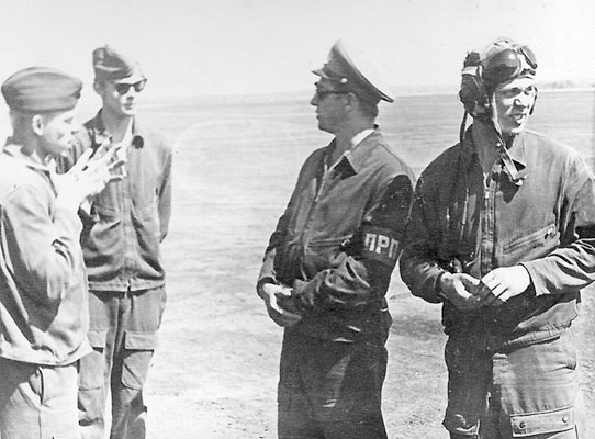 Разбор: на приборы нужно смотреть, а не на девок на речке! Курсанты: В. Васильев, А. Погребной, командир звена майор В. Титов, курсант В. Наймушин – будущий летчик-испытатель