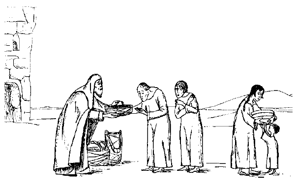 Они убегают городов и общественных собраний, потому что воюющему не годится сидеть в доме, но должно жить в таком жилище, которое легко оставить; они, если нужно, оставляют его, как воины оставляют лагерь во время мира. Но приятнее видеть пустыню, усеянную хижинами монашескими, нежели стан воинов, раскидывающих в поле шатры. В палатках воинов Христовых мы не увидим ни растянутых покровов, ни острых копий, ни золотых тканей, покрывающих палатку царскую. Но если бы кто простер на земле, которая обширнее и неизмеримее нашей, многие небеса, тот представил бы подобное жилищам иноков. Ибо их обитель ничем не хуже небес, потому что к ним сходят Ангелы, даже Сам Господь Ангелов. Сии подвижники, как воины, живут в шатрах не с копьями, не со щитами и бронями, и, однако ж, они совершают такие подвиги, каких те и с оружием произвести не могут. Они каждый день сражаются и побеждают все восстающие на них похоти. Одним хотением они побеждают врагов, которыми воины побеждаются. Пьянство и пресыщение побеждено у них питьем воды и лежит повержено и мертво. А это – многовидный и многоглавый зверь… В воинстве духовном каждый воин одерживает победу. Кто сам не нанес врагу смертоносного удара, того он не перестает беспокоить всячески. Каждый из сих воинов воздвигает такие трофеи, каких не могут воздвигнуть воинства, собранные со всех концов вселенной. Они отринули от себя все беспорядочное и безрассудное – безумные слова, неистовые и отвратительные болезни, кичение и все, чем вооружается против человека пьянство. Они употребляют пищу не для пресыщения и наслаждения, но для удовлетворения естественной потребности… Они довольствуются хлебом и водою. Смятение, шум и беспокойство совершенно от них изгнаны, и как в жилищах их, так и в теле великая тишина. И не только над сладострастием одержали победу святые мужи, но и над любостяжанием, славолюбием, завистью и вообще над всеми болезнями душевными. Итак, трапеза сих воинов не лучше ли трапезы воинов царя земного? Трапеза мужей святых возводит на небо; ее приготовляет Христос; правила для нее дает любомудрие и целомудрие. Пустынножители не женятся, не посягают иметь много, не предаются изнеженности, но, кроме самых неизбежных нужд для существа телесного, живут как бестелесные. Трапеза их приготовляется праведными трудами; будучи свободна, не позволяет собеседникам говорить ничего срамного; ищет пользы своих соучастников; не попускает оскорбить Бога. Нет у иноков никаких возмущений душевных, нет ни болезней, ни гнева: все тихо, все мирно, везде великая тишина, великое безмолвие. Постелью инокам служит трава: многие спят, не имея крова – небо служит им вместо крова, и луна вместо светильника. У них нет господина и раба: все – рабы и все – свободные. Они – рабы друг другу и владыки друг над другом. С наступлением вечера им не о чем сокрушаться, не нужно запирать дверь, бояться разбойников. Разговор их исполнен такого же спокойствия. Они всегда разговаривают и любомудрствуют о будущем, и как бы не здешние, как бы переселившиеся на небо и там живущие, всегда рассуждают о небесном, а об настоящем нет ни помина, ни слова. Они говорят о Небесном Царстве, о настоящей брани и кознях диавола, о великих подвигах, совершенных святыми.