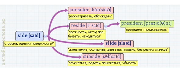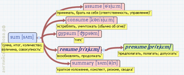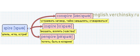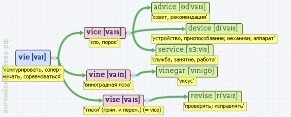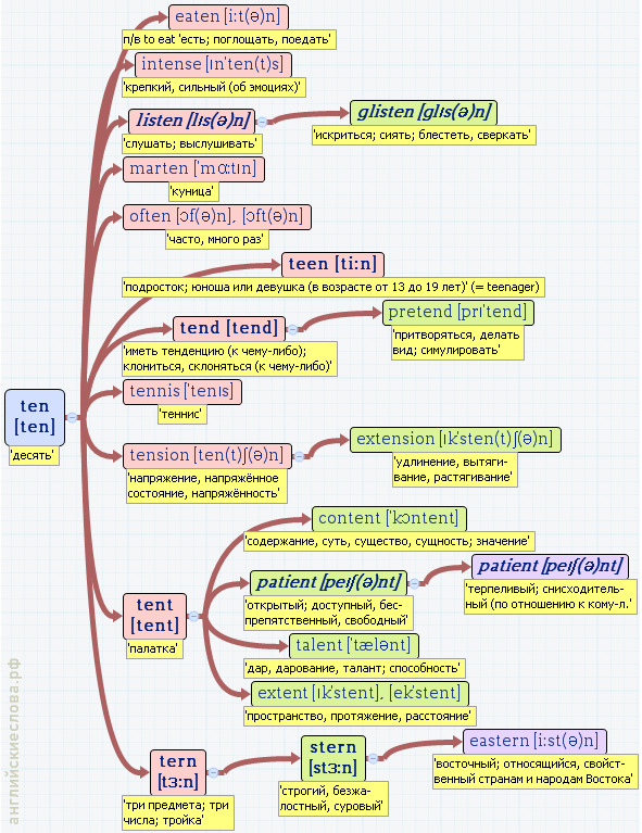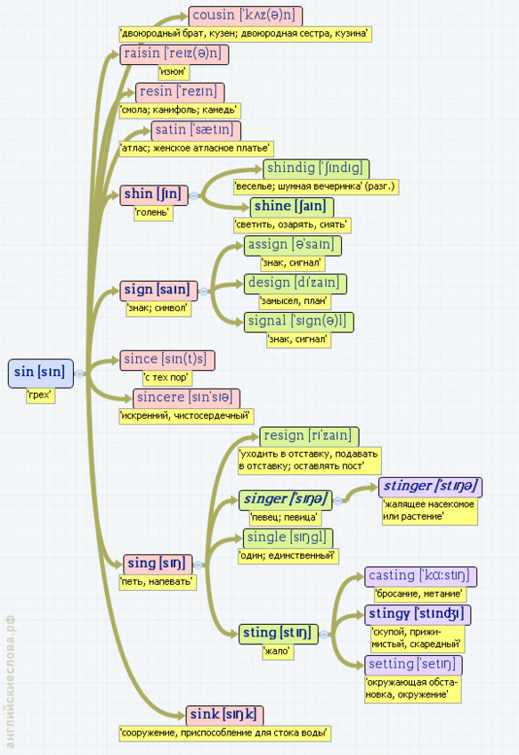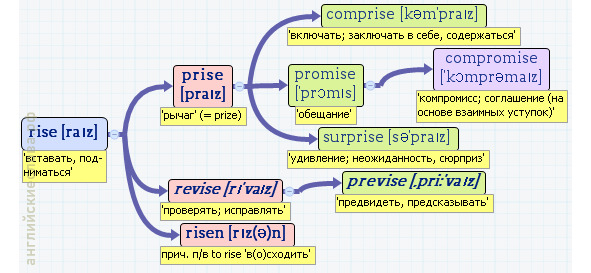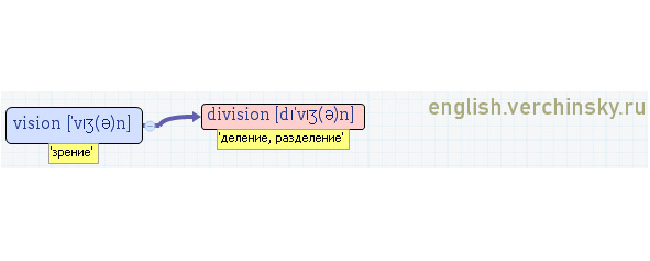 admission [əd’mɪʃ (ə) n]] ← mission [mɪʃ (ə) n] ← miss [mɪs]