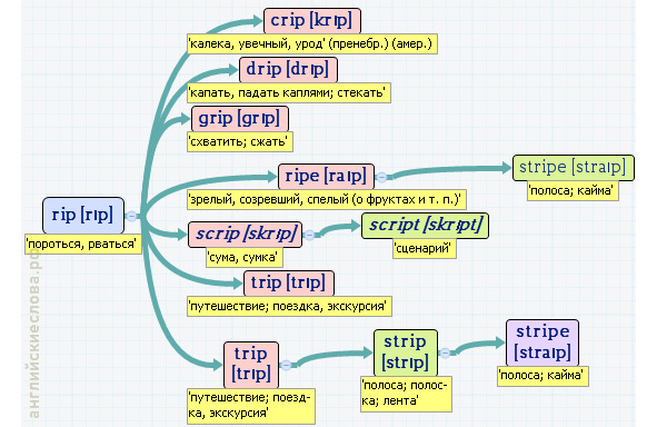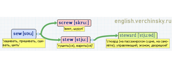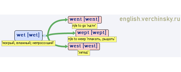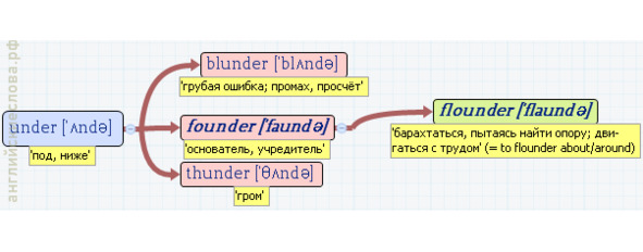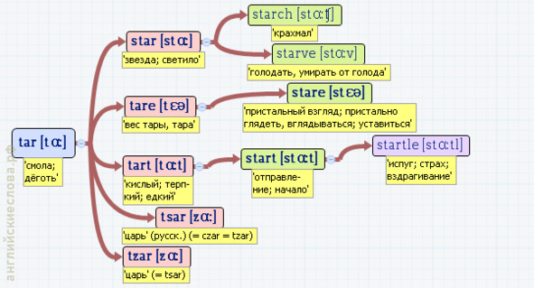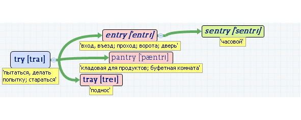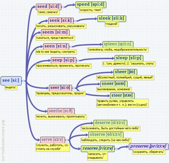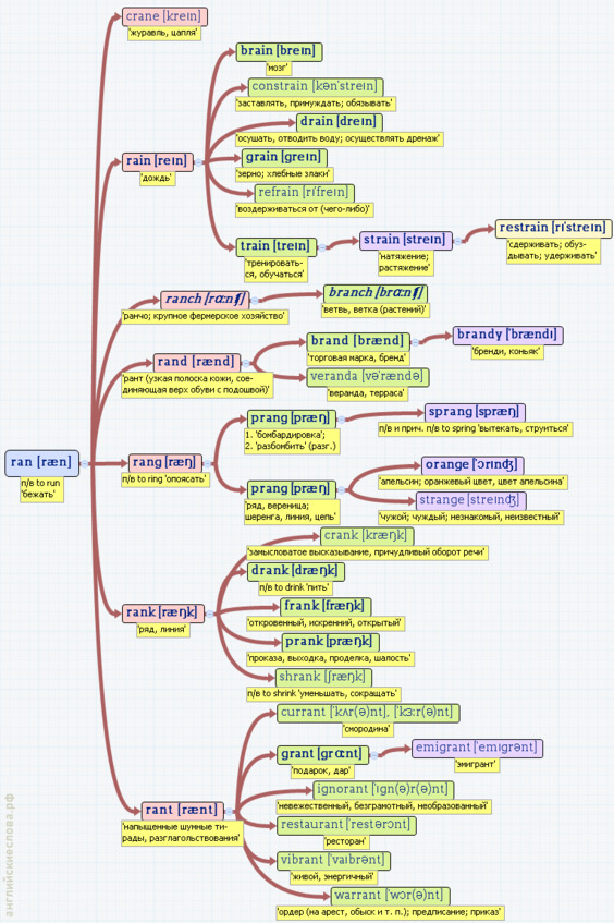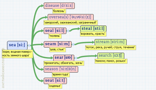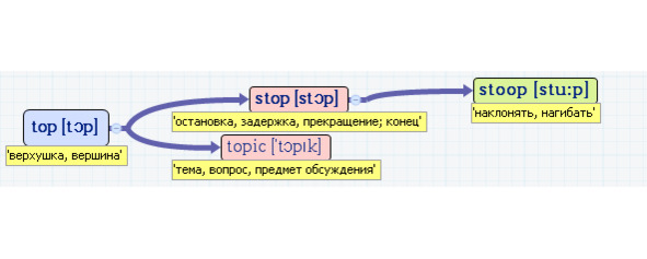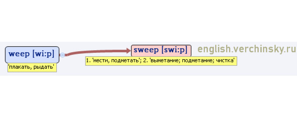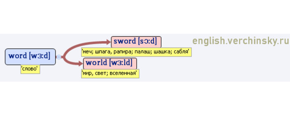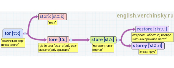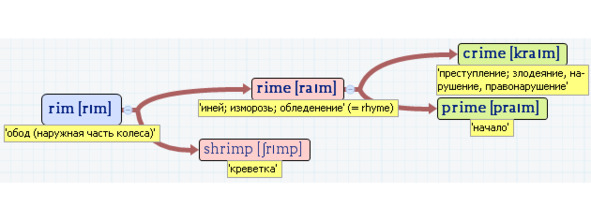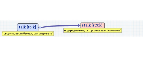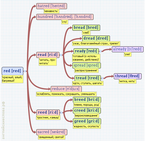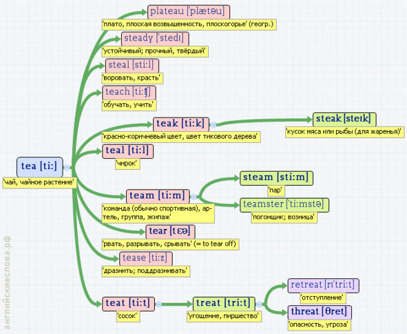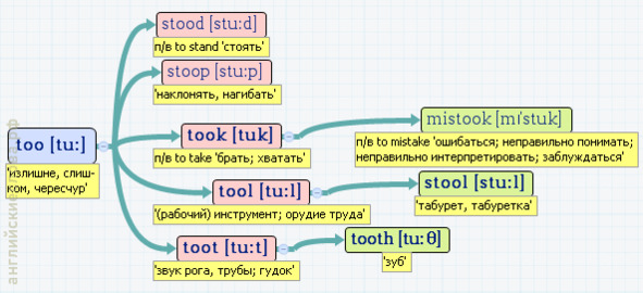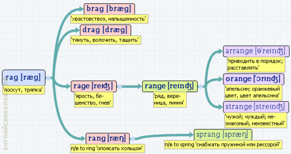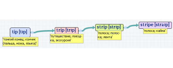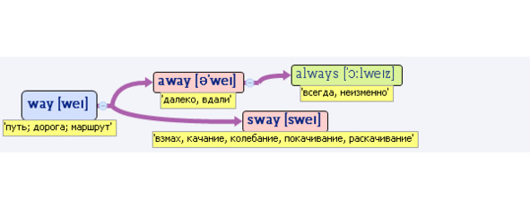 abroad [ə’brɔ: d] ← broad [brɔ: d] ← road [rəud] ← rod [rɔd]
