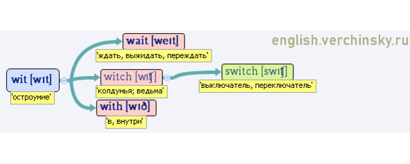 acute [ə’kju: t] ← cute [kju: t] ← cut [kʌt]