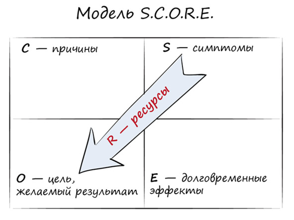 Модель SCORE применяют следующим образом. Начинаем с S – с симптомов, которые показывают, что что-то не так. Прежде всего необходимо изучить их и определить обладателя проблемы. Кого текущее состояние не устраивает? Хорошо бы, конечно, чтобы у этого человека было достаточно власти и влияния, но не обязательно. Заинтересованность и влияние ходят рядом. Если есть высокая заинтересованность, разумный человек всегда найдет подходящий рычаг.