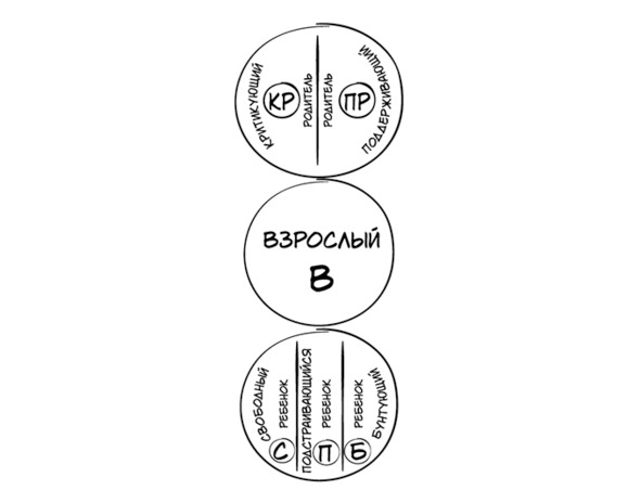 Она и в самом деле похожа на снеговика из трех шаров. Мы состоим из трех внутренних частей. Верхний шар – Родитель. Он состоит из двух частей: наш критикующий родитель и родитель поддерживающий. Критикующий часто представляет собой образ наших родителей, когда они за что-то нас распекали. Ребенок упал и разбил коленку. Что он услышит от критикующего родителя? «Вечно тебя носит где попало, вечно ты под ноги не смотришь! На минуту нельзя оставить – опять весь испачкался… Придем домой – будешь стоять в углу!» Поддерживающий иногда тоже является образом наших родителей. Но чаще – образом того, какими мы хотели бы их видеть. Конечно, иногда наши родители именно такие и есть – тут уж кому как повезло. Однако это бывает редко, и обычно таким «везунчикам» не нужны услуги коучей. Как мы порой шутим, в услугах психологов и коучей нуждаются не все, а только те… у кого есть или были родители. Поддерживающий родитель начинает «поддерживать»: «Бедный мальчик! Тебе же больно, дай поцелую… Пойдем купим мороженое».