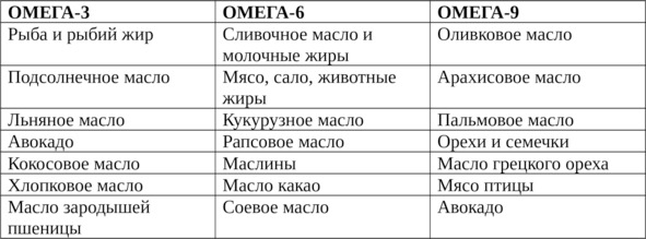 Для начала приведем небольшую таблицу, в которой мы приведем те продукты, в каковых преобладают те или иные жирные кислоты.