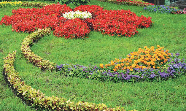 Вот тут появились немыслимые клумбы в виде ваз, часов с циферблатами, календарей, портретов… Все это было весьма концептуально, но слишком трудоемко. Ведь в календарях, к примеру, приходилось ежедневно менять ящики с цифрами. Поэтому мода на оригинальные клумбы стала проходить, и на смену ей пришла мода на пестрые клумбы. На них в виде полос, прямоугольников, квадратов и других фигур высаживалось множество ярких декоративных растений, чем пестрее, тем лучше.