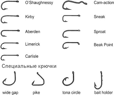 Приобретая крючки, мы, прежде всего, ориентируемся на производящую их фирму, и редко задумываемся, откуда берутся названия различных изделий. В литературе, да и на упаковках то и дело встречаются такие обозначения, как Kirby, Sproat. Эти крючки имеют своеобразную форму, которая разрабатывалась на протяжении XVII – XIX веков и данные названия не что иное, как имена родоначальников известнейших фирм, изготавливающих крючки на протяжении более трех веков. Dublin, Limerick (Ирландия), Aberdeen (Шотландия), Carlisle (Англия) – названия городов, которые также до сегодняшнего дня ассоциируются с характерной для каждого наименования формой крючка.