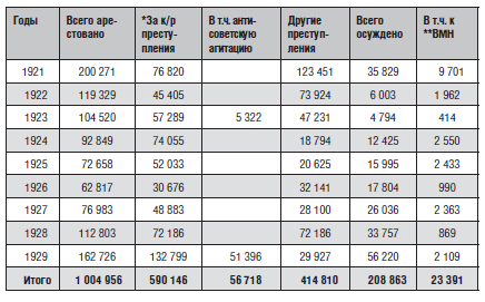 Статистические данные о количестве арестованных и осужденных по материалам органов ВЧК – ОГПУ – НКВД – МГБ СССР в 1921-1953 гг.По делам органов ВЧК – ОГПУ за 1921-1929 годы