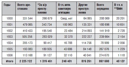 Согласно этим справкам МВД СССР о количестве осужденных по материалам органов ВЧК-ОГПУ-НКВД-МГБ-МВД СССР, всего за указанный период 1921–1953 годов в судебном и несудебном порядке были осуждены 4 060 306 человек (в 1921–1929 годы – 208 863 человека, 1930–1936 годы – 1 391 093 человека, 19371938 годы – 1 344 923 человек, в 1939–1953 (первое полугодие) – 1 115 427 человек).
