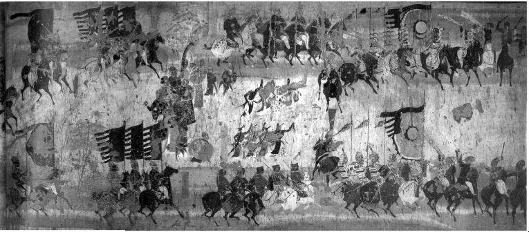 Рис. 4. Чжан Ичао возглавляет войска, фреска в гроте Могао № 156 (Cave Temples of Mogao, pp. 26–27)
