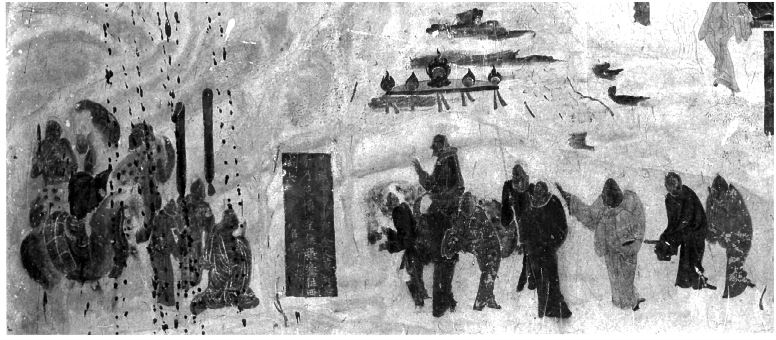 Рис. 1. Чжан Цянь прощается с ханьским императором Уди, фреска в гроте Могао № 323 («Распространение буддизма на восток» [ «Фоцзяо дунчуань гуши хуацзюань»], С. 126, Илл. 105)