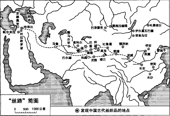 Карта 3. Великий шелковый путь («Собрание статей Ся Ная» [ «Ся Най вэньцзи»], Т. 2, С. 307)