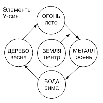 В этом параграфе мы будем рассматривать особенности взаимодействия всех элементов схемы У-син с элементом Огонь, который соотносится с мужским началом.
