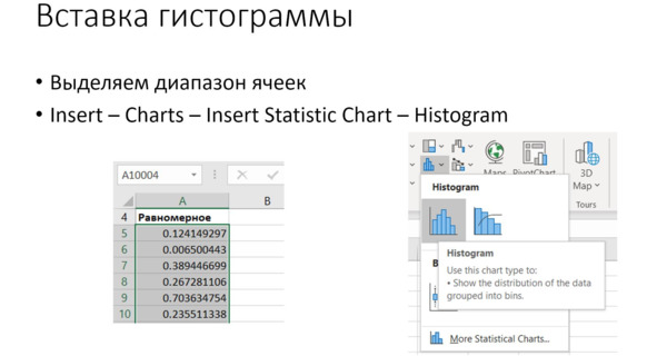 Рис. Вставка гистограммы как статистической диаграммы
