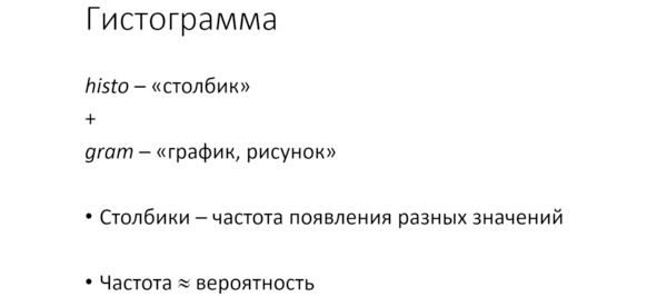 Наши столбики изображают частоту появления разных значений случайной величины. Напомним, что частота примерно соответствует вероятности.