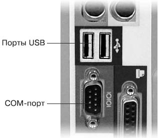 Порты шины USB (universal serial bus – универсальная последовательная шина) обязательно присутствуют в любом современном компьютере (см. рис. 1.2). Этот стандарт подключения внешних устройств постепенно пришел на смену последовательному порту. Данные здесь, как и через COM-порт, передаются по двум проводам. По третьему проводу на подключаемые устройства подается напряжение питания +5 В.
