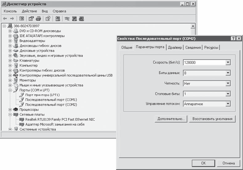 Остальные настройки последовательных портов обычно изменять не нужно. Вернуть все настройки порта к первоначальным значениям можно, нажав кнопку Восстановить умолчания.
