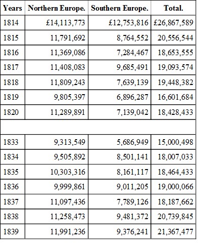 Table showing the date and value of Exports of British Iron Manufacturers to Europe in the afore-mentioned years.