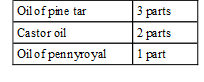 If when you were a child your father held your nose as an inducement for you to open your mouth while your mother poured castor oil down your throat, the odor of the castor oil rising above the odors of the other ingredients will revive sad memories. Indeed it is claimed for this mixture that the dead will rise and flee from its compounded odor as they would flee from eternal torment. It certainly should ward off such little creatures as black flies and mosquitoes.