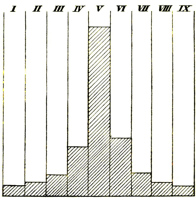 We shall find later on that Professor Newcomb himself, as the result of a quite different inquiry arrives at a result in accordance with these diagrams which will then be again referred to. As this is a very interesting subject, it will be well to give another diagram from two tables of star-density in Sir John Herschel's volume already quoted. The tables are as follows:—