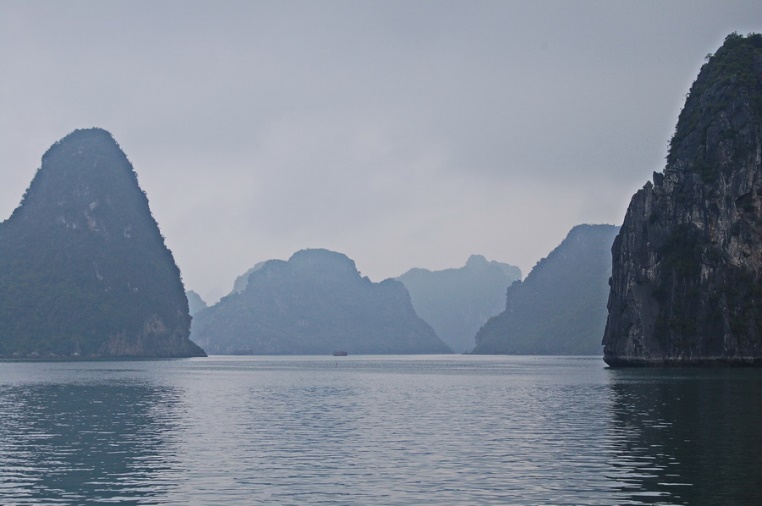 Все, однако, круто изменилось, едва наша компактная группа из восьми человек забралась на уютное судно и отправилась в непродолжительный круиз. Спустя несколько минут мы были одни во Вселенной: десятки других прогулочных кораблей словно растворились в тумане, а наш в гордом одиночестве бесшумно скользил по гладкой воде навстречу фантастическим скалам, будто вырастающим из жемчужной морской дымки. Их было огромное количество – этих неправдоподобно красивых скал с мягкими, причудливыми очертаниями, – и мы неторопливо проходили между ними, словно путешествовали по коридорам исполинского природного лабиринта.
