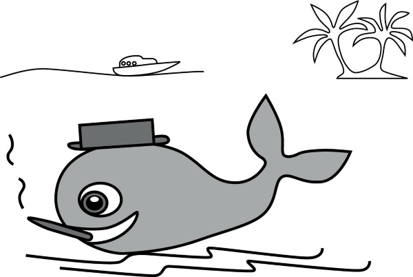 Комментарий. У большинства людей получается нечто похожее на кита с сигаретой во рту (вероятно, она дымится) и со шляпой (кепкой, папахой, цилиндром) на голове. При этом возможны некоторые добавления: кит плывет по волнам, на заднем плане виднеется остров с пальмой или пароход, в небе парят облака, летают чайки, светит солнышко и т. д. В общем, вероятнее всего, у вас получилось примерно следующее.