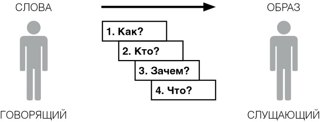 Человек говорящий приходит к пониманию «как» в последнюю очередь, а слушатель именно это воспринимает в первую очередь. Такое «порядковое» несовпадение делает коммуникацию достаточно сложным процессом, а нежелание (неспособность) учитывать это при подготовке коммуникации приводит говорящего к краху задуманного.