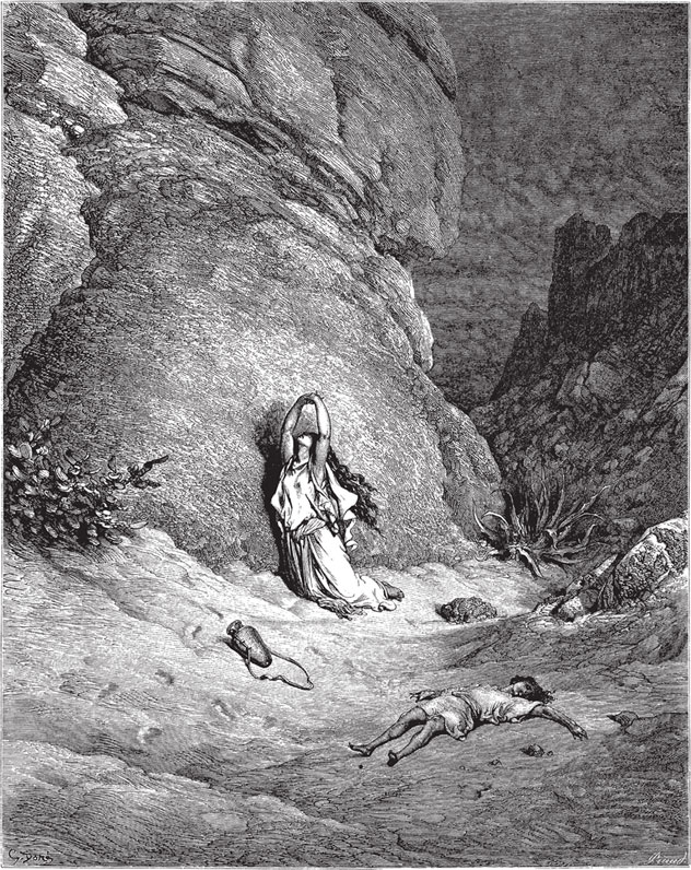 АГАРЬ И ИЗМАИЛ В ПУСТЫНЕ ВИРСАВИИ. БЫТИЕ, ГЛ. 21, СТ. 15–16. …и не стало воды в мехе, и она оставила отрока под одним кустом и пошла, села вдали… И она села [поодаль] против [него] и подняла вопль, и плакала…