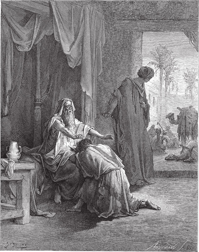 Достигнув лет преклонных, ИсаакСтал помышлять о смерти. Он ИсаваПризвал к себе и сыну молвил так:«Ступай скорей и налови дичиныИ кушанье такое изготовь,Чтоб от него вкусил я перед смертьюИ вслед затем тебя благословил».Когда Исав отправился на лов,Ревекка, взяв немедленно козленкаИ приготовив с травами его,Отправила Иакова к отцуС тем кушаньем, надеяся, что старецПолуслепой, быть может, ошибетсяИ, младшего за старшего приняв,Как первенца его благословит.Когда к отцу вошел Иаков с яствомИ стал просить его благословенья,Назвавшися Исавом, – Исаак,Смутившийся при голосе его,С сомнением ему ощупал руки,Которые Ревекка обернулаКозлиной шкурой, так как волосамиИсав оброс на шее и руках.И вопросил вторично он у сына:«Кто ты, мой сын?»И тот сказал: «Исав».Тогда, вкусив от яства, ИсаакНа голову Иакова с любовьюТрепещущие руки возложил,Торжественно его благословляя:«Приди ко мне! Пусть Божия десницаТебе во всем обилье ниспошлет,Пусть жатвою богатою пшеницаВзойдет в полях и созревает плод.Перед тобой – перворожденным сыном –Преклонится сын твоего отца,Да будешь ты над всеми господиномИ да почтишь в душе своей Творца.Благословен – тебя благословящий,Весь род земной благословен в тебе,И всяк, тебе обиду наносящий,Тем навлечет проклятие себе».Небесная лестница