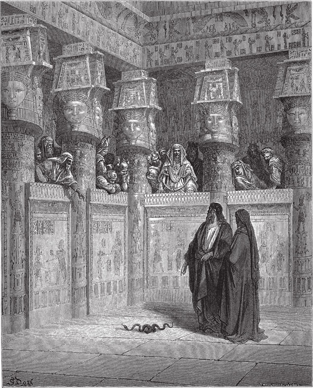 МОИСЕЙ И ААРОН ПЕРЕД ФАРАОНОМ ИСХОД, ГЛ. 7, СТ. 10. И бросил Аарон жезл свой пред Фараоном и пред рабами его, и он сделался змеем.