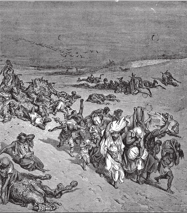 И снова Моисей услышал Божий глас:«Иди и возвести властителю сейчас,Чтоб с миром отпустил народМой на служенье,А если фараон не выполнит веленье,Заутра же Господь, свершая приговор,На все стада его пошлет великий мор…»* * *И все исполнилось согласно Божьей воле.Погибли все стада, пасущиеся в поле,Верблюды – корабли зыбучие степей –Бессильно падали под ношею своей;Изо всего скота не избежали карыНи табуны коней, ни тучные отары.* * *В стадах египетских царили мор и страх,Но ни одной овцы в израильских стадахНе пало – Господом от казни пощаженных.Заутра, услыхав о том от приближенных,Смутился фараон, но, гневом распален,Евреев отпустить не согласился он.