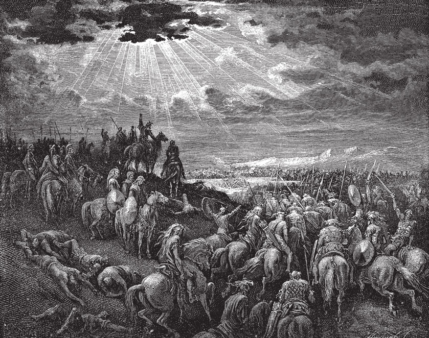 Уж ночь близка. Черна, угрюма, как могила,Она ползет и мглой все кроет по пути…«Остановись, небесное светило!Не угасай – путь долгий впереди!..Дай дня, дай света мне!.. Неведомая силаРастет в уме моем, кипит в моей груди…Остановись, небесное светило!Остановись и путь мой освети!» –Торжественно звучал могучий глас Навина;С благоговением народ ему внимал.Пред ним была степей безбрежная равнина,И угасавший день вновь чудно засиял…И двинулся он в путь. Ряды врагов редели;Смиренно перед ним бежала ночи тень;Победы яркие над ним лучи блестели,И разгорался славы новый день.Битва под Гаваоном