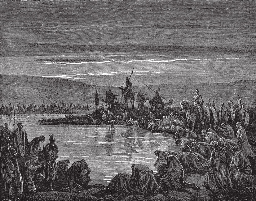 ИСПЫТАНИЕ ХРАБРЕЦОВ. КНИГА СУДЕЙ ИЗРАИЛЕВЫХ, ГЛ. 7, СТ. 5. Он привел народ к воде. И сказал Господь Гедеону: кто будет лакать воду языком своим, как лакает пес, того ставь особо.