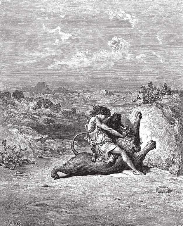 ЮНОША САМСОН И ЛЕВ. КНИГА СУДЕЙ ИЗРАИЛЕВЫХ, ГЛ. 14, СТ. 6. И сошел на него Дух Господень, и он растерзал льва как козленка; а в руке у него ничего не было.