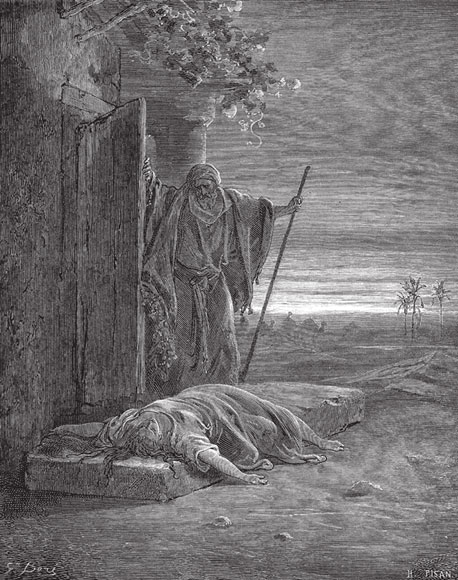 ПРЕСТУПЛЕНИЕ СЫНОВ ВЕНИАМИНОВЫХ. КНИГА СУДЕЙ ИЗРАИЛЕВЫХ, ГЛ. 19, СТ. 27. Господин ее встал поутру, отворил двери дома и вышел, чтоб идти в путь свой: и вот, наложница его лежит у дверей дома, и руки ее на пороге.